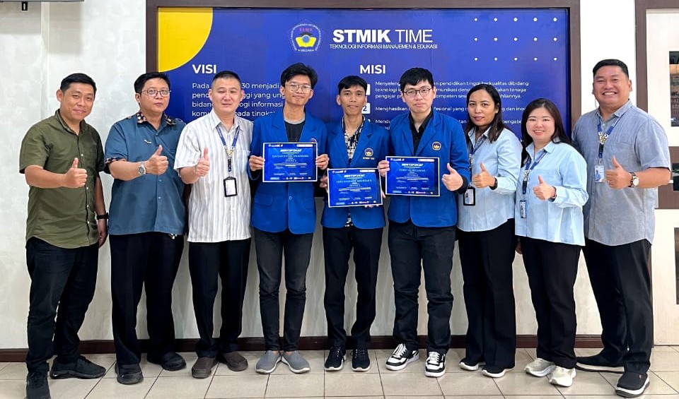 Ketua STMIK TIME, Dr. Edi Wijaya, S.Kom., M.Kom., M.M., bersama jajaran pimpinan yaitu Hendri, M.Kom., Feriani Astuti Tarigan, M.Kom., M.M., Leony Hoki, S.Kom., M.M., dan Robet, M.Kom., menyampaikan apresiasi mendalam atas keberhasilan tim STMIK TIME yang berhasil meraih Peringkat 3 Nasional. Mereka menegaskan bahwa capaian ini merupakan bukti konsistensi kampus dalam mengembangkan talenta digital unggul dan memperkuat reputasi STMIK TIME dalam dunia desain teknologi.